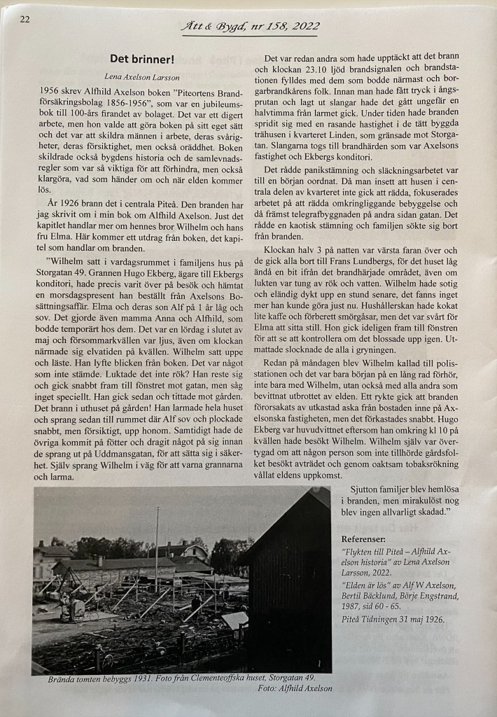 Utdrag ur boken ”Flykten till Piteå – Alfhild Axelsons historia”, publicerad i Piteåbygdens Forskarförening.