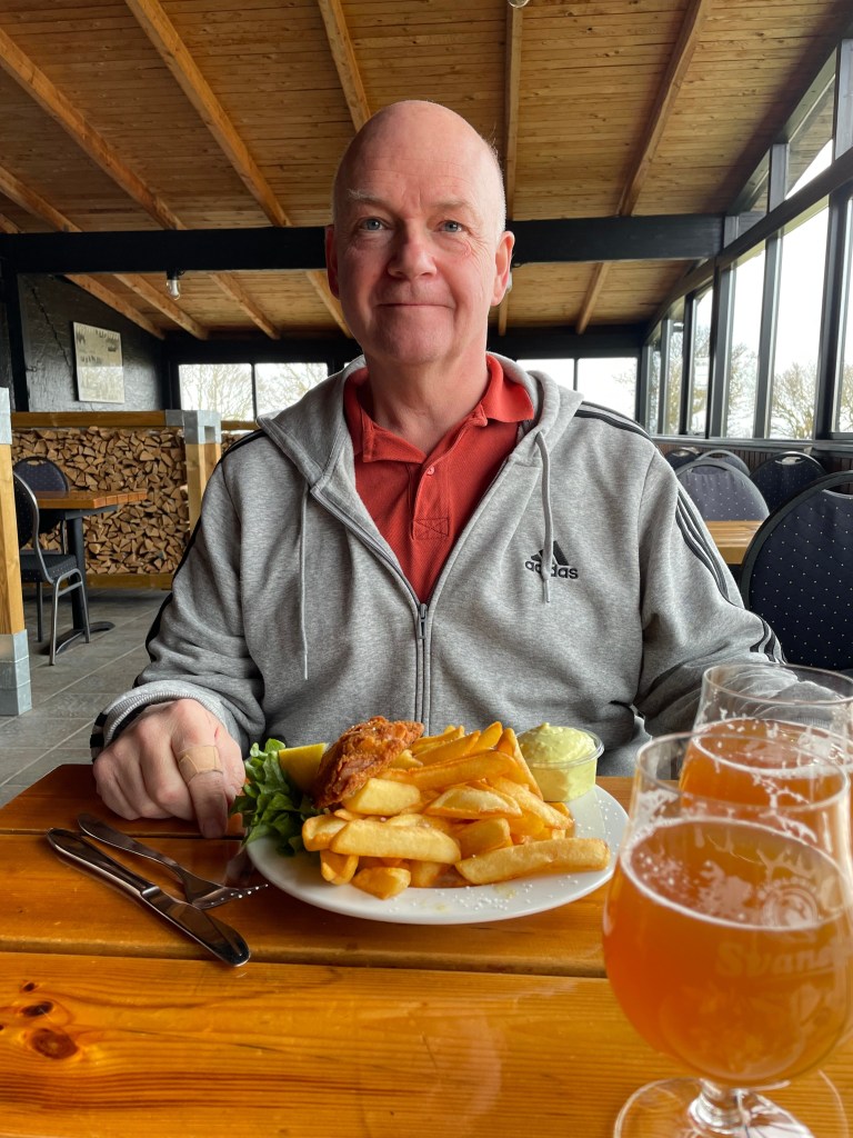 Lite småregnigt, kallt och blåsigt, så vi bestämde oss för att ta bilen för en rundtur på ön. Vi började med en kort tur till Svaneke, som vi sett gjort reklam för ett trevligt rökeri med restaurang. Och det gjorde skäl för den reklamen. Jättegod lunch i en trivsam miljö. Därefter drog vi mot Rönne.