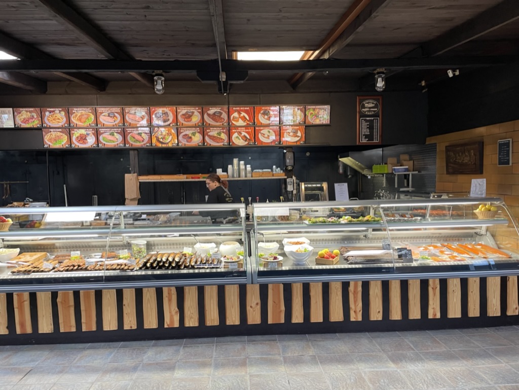 Väl uppe på vägen så blev det tvärnit. Någon olycka såklart. Vi hade väntat oss att vara framme till drink-tid, men det insåg vi snart att det var kört. (Drinktid är all tid efter 16 på helger🍸). Jag började kolla efter restauranger i närheten av ställplatsen, men insåg att allt var stängt. Påsken är ingen högsäsong i den här delen av landet (till skillnad från både fjällvärlden och södra Sverige). Det fick bli nödlösningen. Vi åkte in på Maxi i Linköping och köpte var sin räkmacka. Ett bra drag, för vi var inte framme förrän 19 och då var vi bra hungriga.